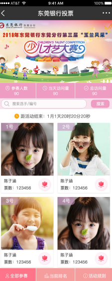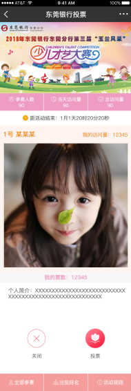 (2)支持显示参赛者编号、票数、个人资料等信息