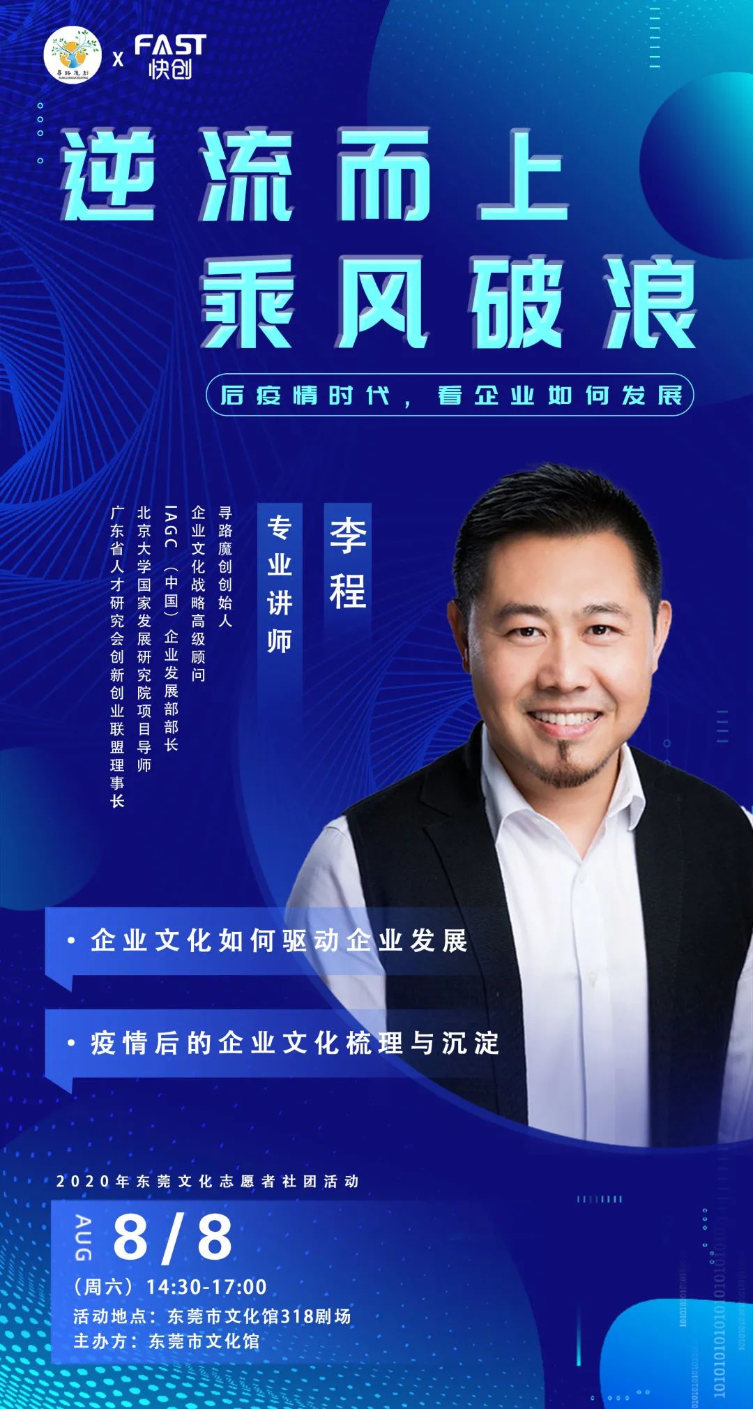八月初开,随着疫情的逐渐缓和,市场的冬雪开始融化,一切尽在复苏。企业文化主题讲座,在文化馆举行。趁着百业振兴的日子里,由东莞市文化馆主办,寻路魔创学院携手快创科技共同开启的主题讲座:「企业文化如何驱动企业发展/疫情后的企业文化梳理与沉淀」顺利举行,向历经「严寒」仍坚守的企业献礼。